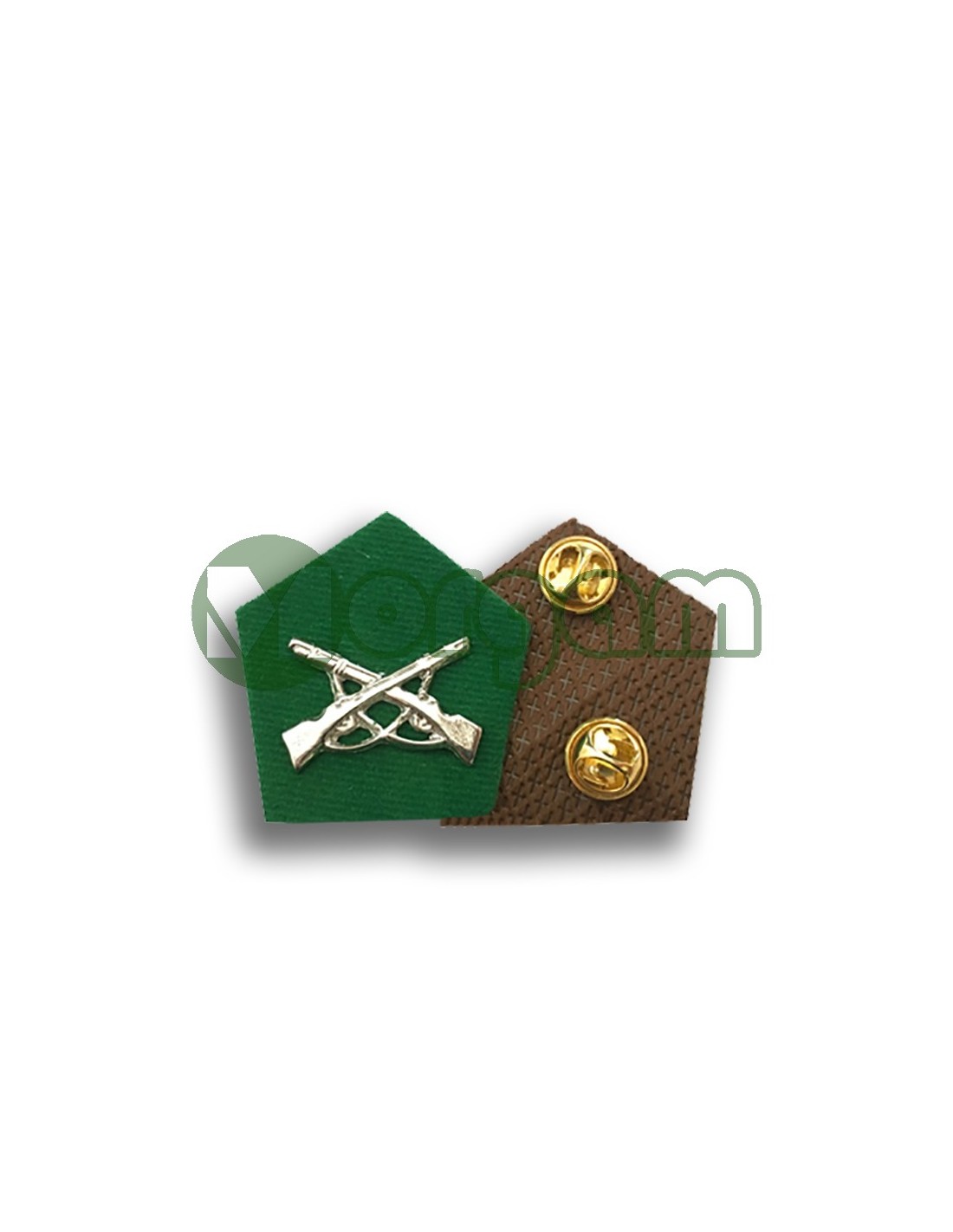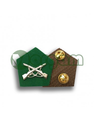 Parche pentágono, base de latón, pins incluidos, forrada en terciopelo con carabinas cruzadas brillantes, ,